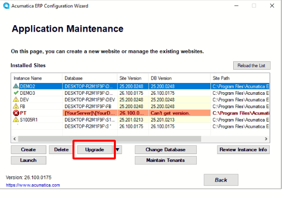 - Run Maintain Tenants → Upgrade